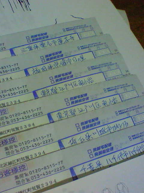 次にお客さんのオーダー用紙の支払い条件を確認し、代引きなどの支払い条件確認しながら送り状を作ります