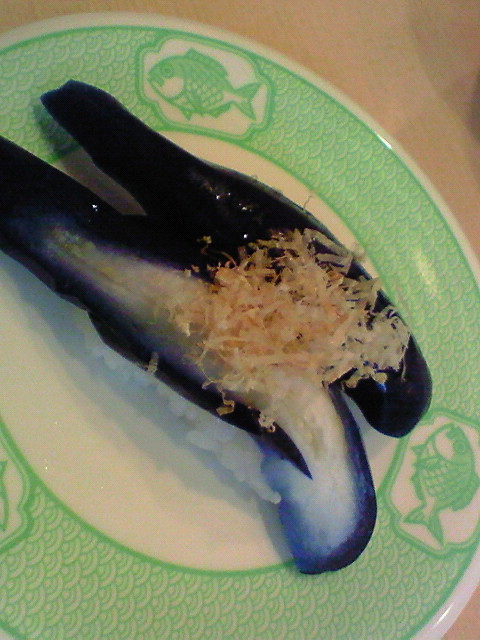 こちらは地元の無農薬ナスの浅漬けにぎり ← むちゃくちゃ美味いです、これ