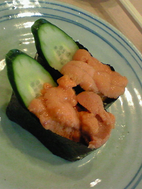こちらは北海道直送の採れ立てうにの軍艦、なんと一皿800円