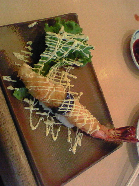 こんなんも回って来ますよ、オーダーものですが。大えびのフライのにぎり