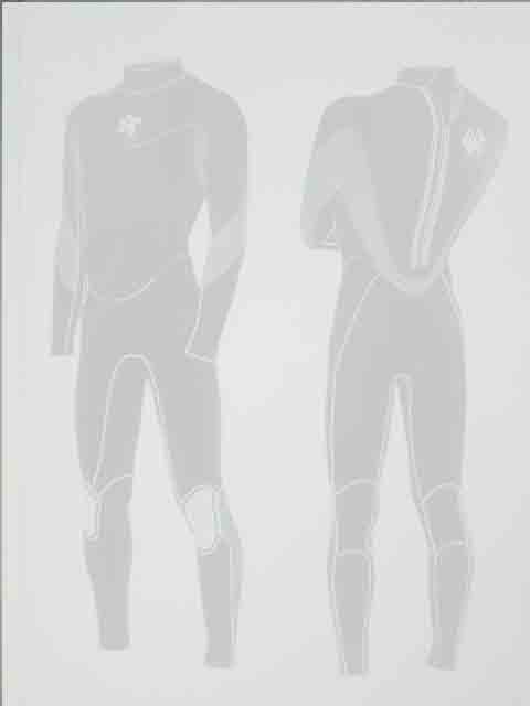 ちっちゃい生地(パネル)をいくつも縫い合わせると堅いウエットになっちゃうんでパネル数を抑え、尚且つ斬新なデザインにしてみました