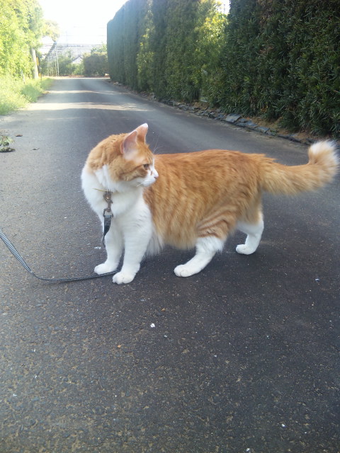 残念ながら今日は見つからなかったけど・・・自宅に戻ると次はわらびのお散歩 リードつけて散歩してる猫ってあんまり居ないですよね