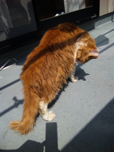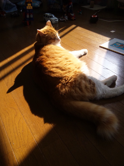 ベランダ天日干し後、パパの部屋の陽だまりでまったりしちゃってます