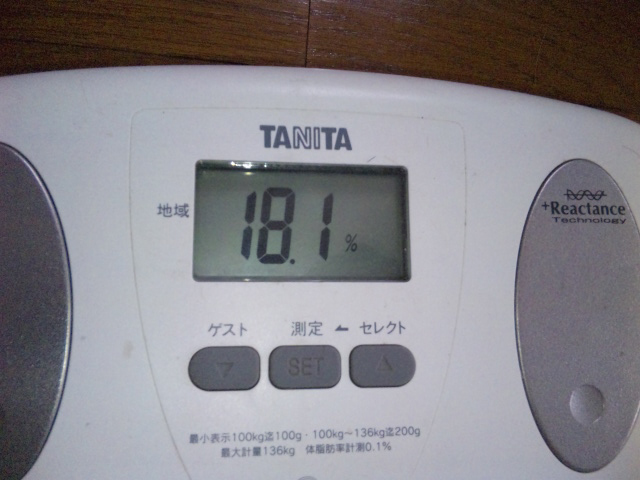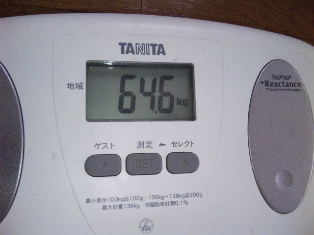 自宅に戻り、シャワーあびて体重計に乗ってみると、またまた体重減 体脂肪も減