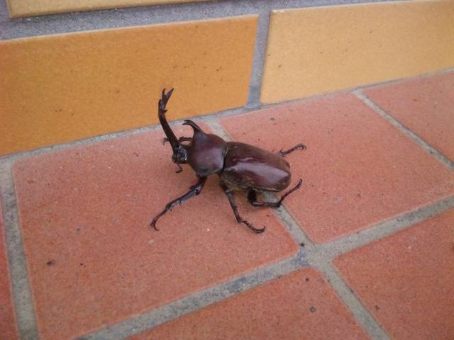 今朝は自宅ではなく、コンビニの入り口にカブト居ました