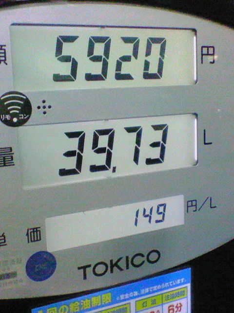 皮肉な事に今まで猛威を振るっていた原油高は一先ず終息のようで、久しぶりに140円台で給油が出来た。