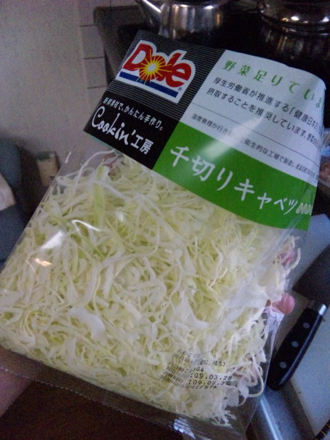 バナナで有名なDoleの「千切りキャベツ」ご存知ですか? まったく無駄が出ず、しかも超新鮮なんで時間に追われる主婦にはお勧めですよー