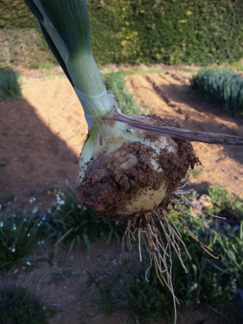 日曜日の晩飯つくりはほとんど俺の仕事! って事で畑へ行ってタマネギ抜くべっ!