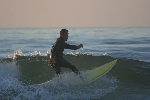 昨日のデカ波は姿を消し、コンスタントに腰~胸ぐらいでした
