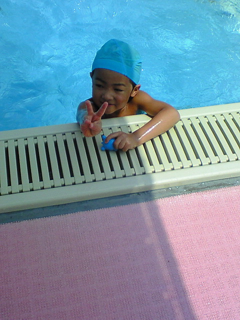 「レアル、クロールやってみろっ!」っと話しかけると一生懸命やってますが浮きませんねぇ