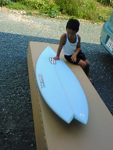 とり合えず板を使える状態にしなくちゃなので、いじってると「おっ、ぱぱすげぇじゃん!」と新品の板ぶっ叩く保育園児1名、そして同時に届いたボードケースとカバーですね。