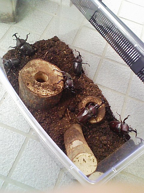 潜ってるのもかなり居るんで何匹いるのか不明な状態。餌代すげぇし、観賞ケースどんどんデカくしなくちゃいけないからもーいらねぇ~、カブト虫は