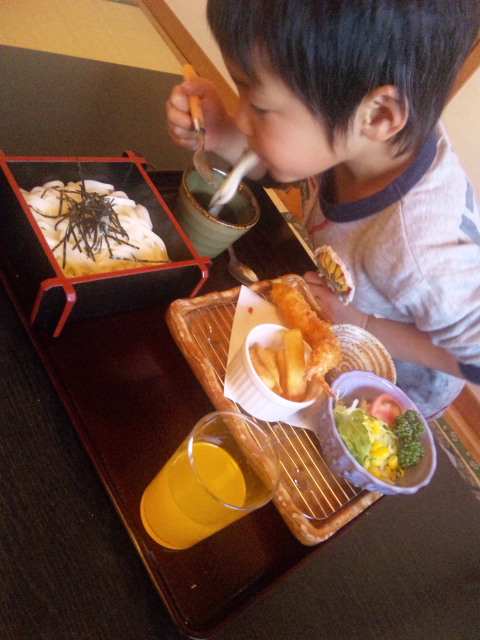 ママはあっさりおうどん、レアルはお子様ランチ、ビールのおつまみにとソバ揚げたカリカリのお通しまでサービスして頂いて有難うございました
