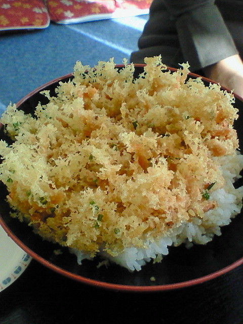 今回の目的はこれ「桜海老のかき揚」やべぇくらい大盛りで、やべぇくらいサクサクッでした。このボリュームで700円