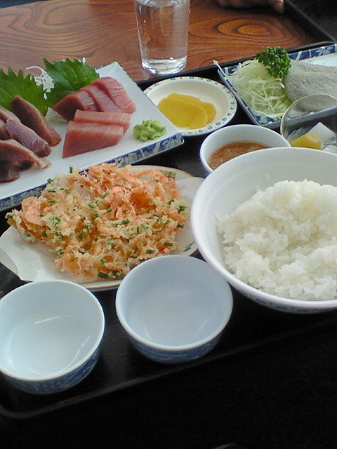 欲張りな俺はこちらの駿河定食! かき揚・かつを・まぐろの刺身・シラス・いわしはんぺんが付いて1.500円、やすぅ~~~い