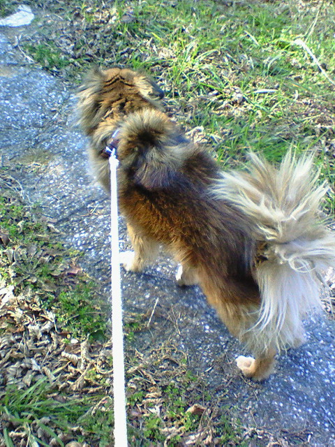 寒さに負けて起きて来ないラブくんを散歩に誘ってみました