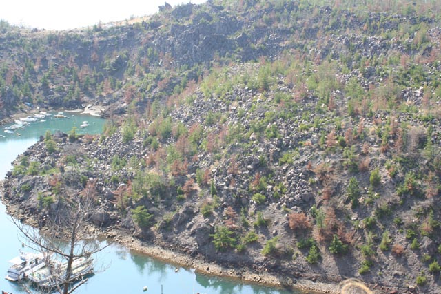 火山灰と岩石だらけのこの土地にも緑が生え、自然の美しい情景を観る事が出来ます、水の青さがこの辺と違うんですよねー