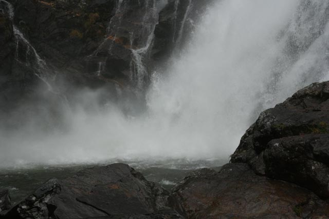 滝つぼに佇むと物凄い爆音と共に滝つぼ全体を覆うような水しぶきが上がり、綺麗な七色のコントラストを描きだし、絶景を演出していた