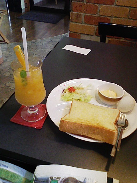 いつもなら会社へすっ飛んで行くところですが、本日はバースディ休暇と洒落込んだんで、喫茶店でのんびり朝食をとりました、一人で喫茶店入ったことないんでちょっとドキドキ