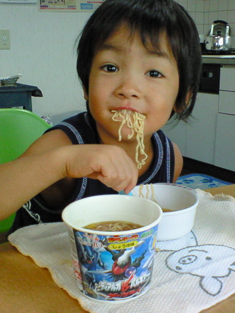 が、レアルは午前中の運動会の景品のお菓子とジュース飲み過ぎで、買い物で買ってきたポケモンのカップラーメンの方が進んでました、もったなぁ~
