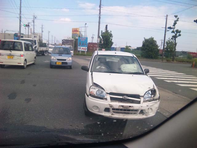 リベンジに夕方サーフ狙い、海へGOするも、西インターの環状線ど真ん中にクラッシュした車あり
