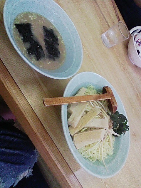 帰り道、「ニューラーメンショップおおもり」にてつけ麺を試食、暑い夏にはこのほーが食べやすくていいかもですね