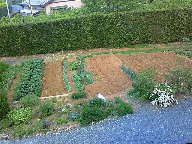 我が家の家庭菜園畑に夏野菜の種が撒かれたよーです、ナス・ピーマン・トマト・スイカ