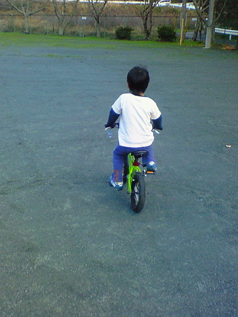 初めて補助輪なしで走りましたー、しかし自力で戻ってこれないので正面画像はありません(笑)