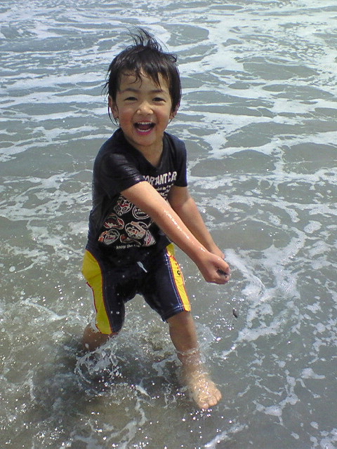 「海パンだから、濡れてもいいよー」のパパの声で一気にはじけこの姿