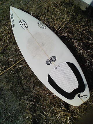 シェイパーなんです。『難しく考える事はないよ、サーフボードはレイルトゥレイルで乗る乗り物なんだっ、パンパンしごかなきゃ動かなかったり、カービングが大変な板は良い板とは言えないよ、本当に良い板はテイクオフしてレイルを反すだけで簡単に波乗りできるよ』 ←確かにシェイパーの言う通り、この板乗るようになって板しごいたり、行きたいトコいけなくてバランス崩したりが減ったような気がします(ヘタクソレベルの感想ですけどね)『りきまず、リラックスして乗れて、しかも動きが良くて速い!これがうちの板だよ。毎年ライダーからフィードバックされる膨大なデータから1番いいトコみつけながら、その年のライン決めていくんだよ、そこに乗り手の技量に合わせてデチューンするんだよ』との事でした。九州まで逢いに行った甲斐がありました
