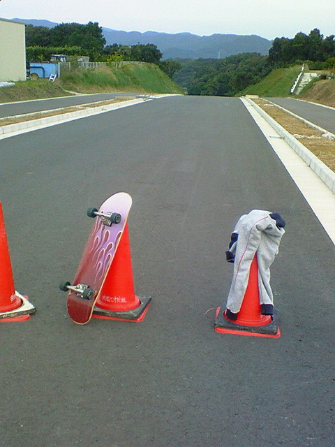 ご丁寧にパイロンまで用意されてるんですよ、このP ← あくまで工事でスケボ用じゃありませんが・・・