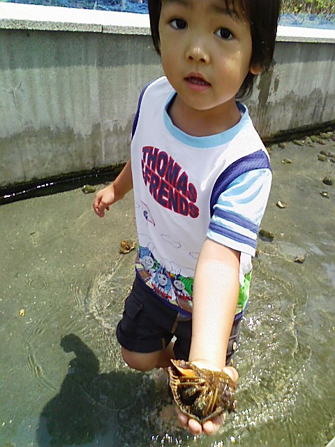 2時間ばかり遊んできましたー ヒトデ・ナマコ・ヤドカリと一通りパパが苦手なものばかりを触らされ、非常に辛い子守でしたよ(よく海入るな、俺)