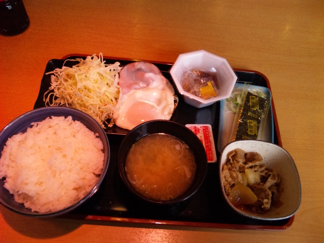 僅か30分ほどでギブアップし、帰路に定番の吉牛「ハムエッグ定食」でモーニング