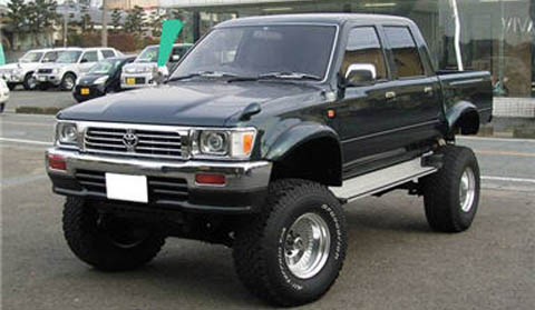 ウインドサーフィンを始めたのとスキーに行く足としてハイラックスのWキャブを新車で購入 当時は四駆ブームで4×4マガジンを汲まなくチェックし、浜松1カッコいいハイラックスに仕上げた