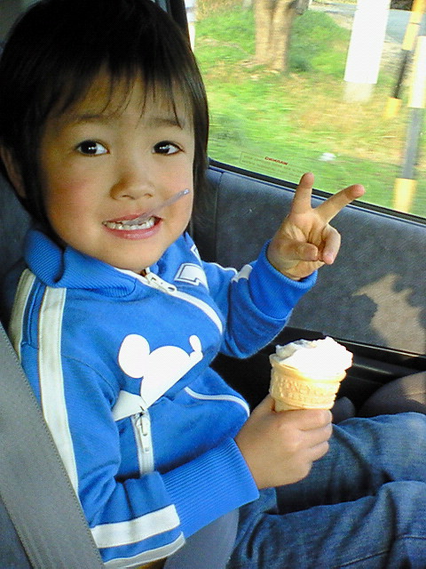 いつものソフトクリームでご満悦らしいっすわ、彼