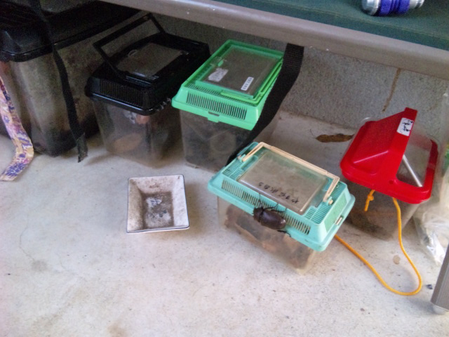 カブトのオス・メス、クワガタのオス・メスを分けてかごに入れて、涼しいガレージの下に置いておくと