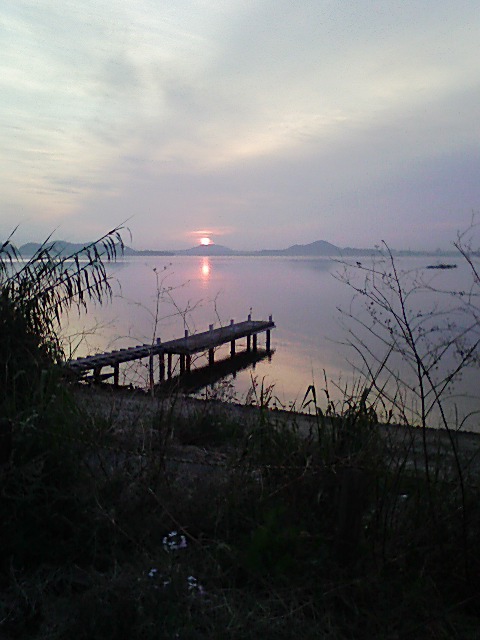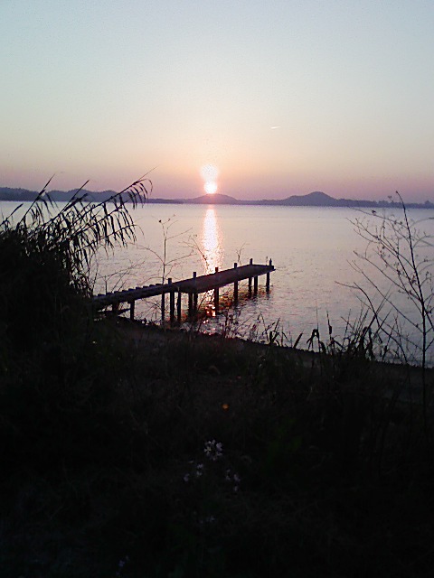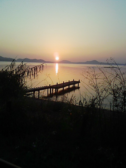 こちら側の湖岸まで朝日が届く、グッドサンライズでしたよ