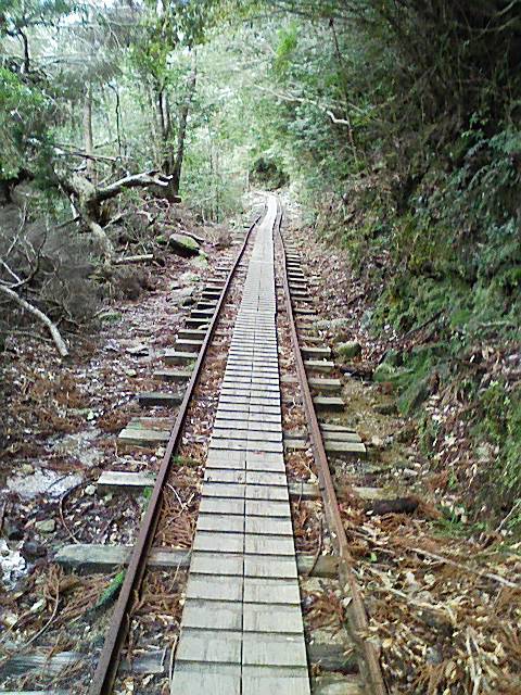 トロッコの線路伝いに約2時間歩き、そこから更に2時間山登りをし、目的地へ到着予定です! 往復8時間、大丈夫か? 俺の足f^_^;