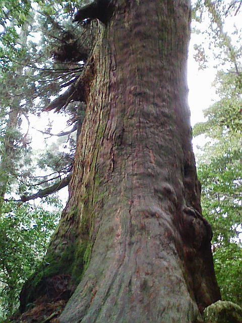 とにかくやたらとデカい杉ばかりでア然です、画像の木の中に大学生と思われる八人のパーティーが入って感動してます!