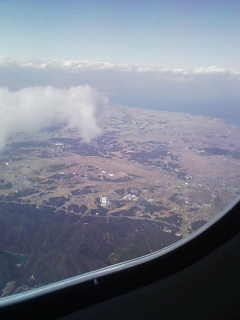 着いたぁ~ セントレア!って、まだ上空ですがf^_^; タイミングよくバス拾えるといいんですが…。さぁ、子供の反応が楽しみですよ~ 毎晩『ぱぱぁ~、すぐ帰って来てぇ、一緒に寝んねしよぉ~』と泣きぐずり電話して来てたので(^_^)